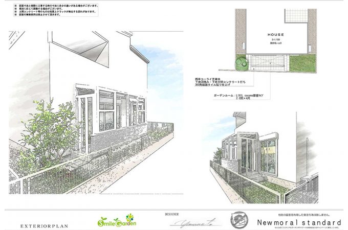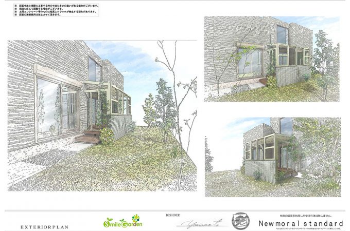 【明るく清涼感のある白い外構】 白く爽やかなイメージの建物と合わせた、明るい外構が完成しました。壁は清潔感溢れる白で統一され、建物...
